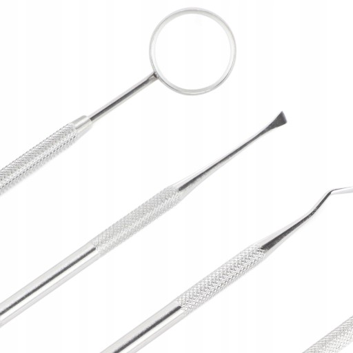 1. Lusterko do ust: Lustro inspekcyjne jest zaprojektowane pod kątem 45 stopni, wygląda jak łyżka jako całość, która służy do obserwacji wnętrza ust.