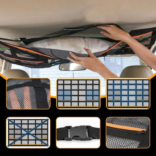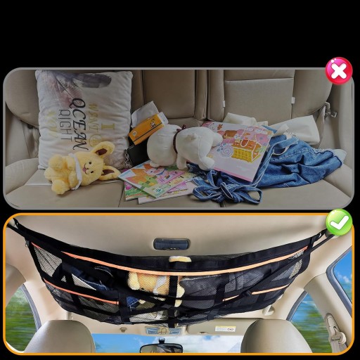 🚗 Oszczędność miejsca, duża pojemność: lekkie przedmioty, takie jak koce dziecięce, zabawki dla dzieci, chusteczki do nosa itp. można przechowywać w siatkowej torbie do przechowywania sufitowego SUV. Ten projekt może pomóc pomieścić wiele przedmiotów o nieregularnych kształtach. Dzięki przezroczystej siateczce z łatwością odnajdziesz swoje rzeczy.
