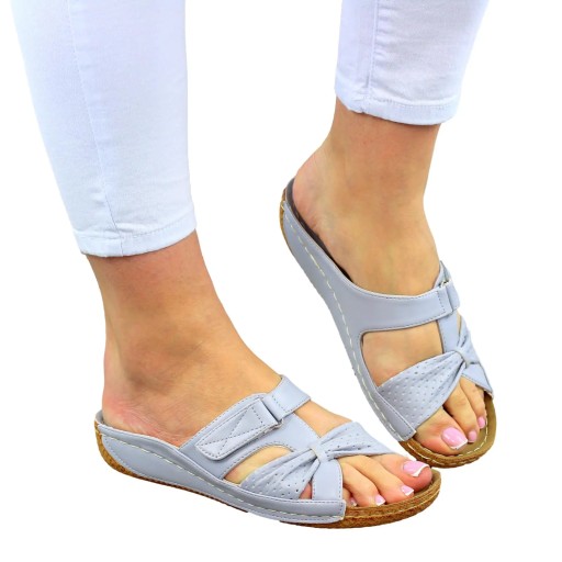 SZARE MEDYCZNE SKÓRZANE KLAPKI DAMSKIE SZYTE 40