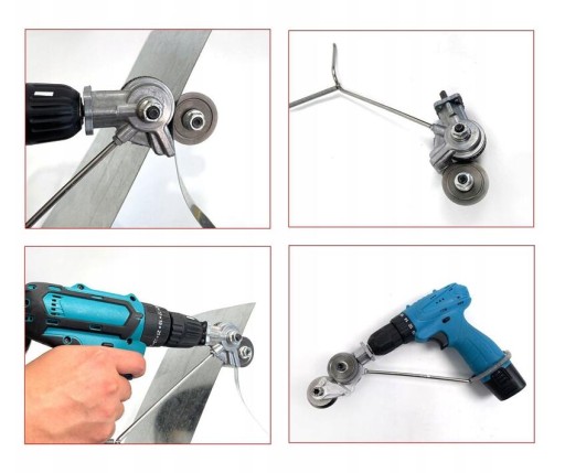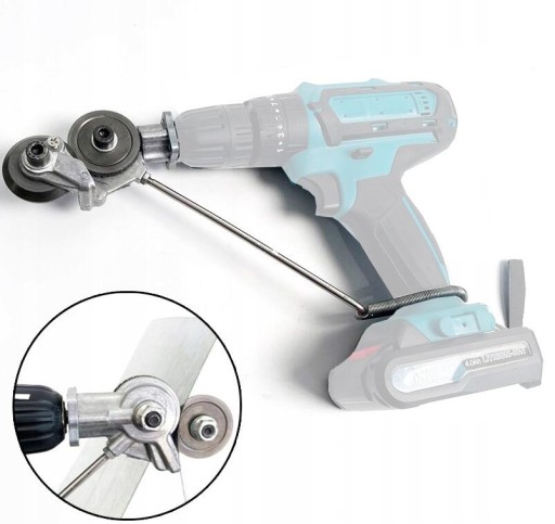 - Montaż nożyc do płyt stalowych: ta innowacyjna metalowa nasadka szybko zmienia wiertarkę w elektryczne nożyce, idealne do uchwytu wiertarskiego. Akcesoria pasują łatwo i bezpiecznie na miejsce i są gotowe do natychmiastowego użycia.