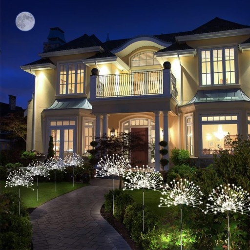 Światło fajerwerków przyjmuje unikalną konstrukcję, która łączy 4 światła ogrodowe szeregowo i dzieli ogniwo słoneczne o dużej pojemności. słoneczne zewnętrzne oświetlenie ścieżek z wysokiej jakości drutami miedzianymi, solidna konstrukcja z twardego tworzywa ABS, może wytrzymać trudne warunki pogodowe, takie jak wiatr, deszcz i śnieg, wodoodporność IP65.