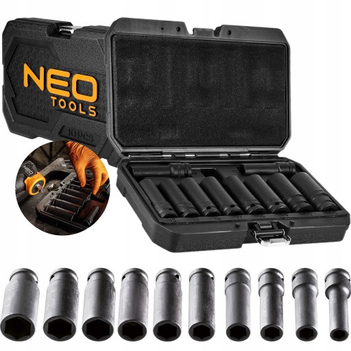 Zestaw nasadek udarowych 1/2" NEO (nr ref. 12-107) składa się z 10 elementów. Zawiera sześciokątne nasadki udarowe w popularnych rozmiarach od 10 do 24 mm. Długie nasadki umożliwiają dostęp do głębokich gniazd śrub. Wykonane z wytrzymałej stali chromowo-molibdenowej. Nasadki o przedłużonej żywotności dzięki produkcji metodą kucia na gorąco. Dostarczane w praktycznej, plastikowej kasecie do przechowywania. Marka NEO spełnia oczekiwania profesjonalistów.