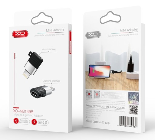 XO adapter NB 149-C przejściówka z gniazda USB typ-C na gniazdo micro USB. Umożliwia ładowanie i transmisję danych. Kompatybilna ze smartfonami, tabletami, laptopami itp. wyposażonymi w złącze typu C.