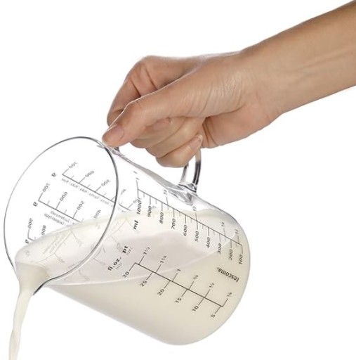 - Naczynie pozwoli dokładnie odmierzyć zarówno płyny jak i sypkie produkty