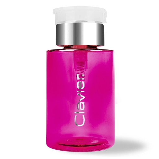 Dozownik z pompką wykonany z plastiku różowego, nietłukący się, nie rdzewieje, posiada przykrywkę zapobiegającą utlenianiu się i parowaniu płynów. Wygodne aplikowanie płynu na wacik, wystarczy docisnąć wacik do buteleczki.