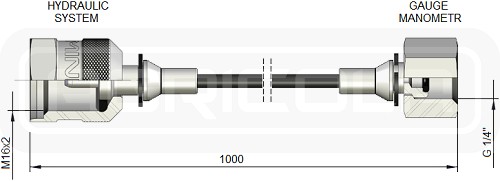 Przewód przeznaczony do pomiaru ciśnienia oleju w układach hydraulicznych zamkniętych, w których są warunki do wypracowania ciśnienia hydraulicznego. Pasuje do manometrów z gwintem zewnętrznym G1/4".