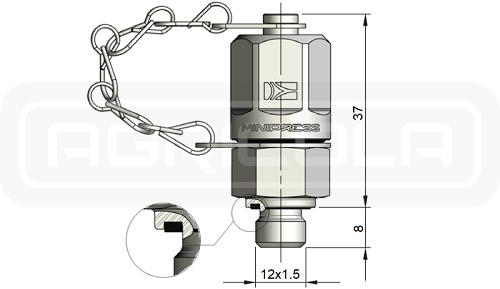 Kapturek gwintowany z łańcuszkiem zapewnia ochronę przed warunkami atmosferycznymi i uszczelnia przyłącze podczas gdy zestaw pomiarowy jest odłączony. Rozwiązanie to umożliwia pozostawienie przyłącza na stałe, nawet gdy maszyna pracuje pod ciśnieniem, a zestaw pomiarowy jest odłączony.