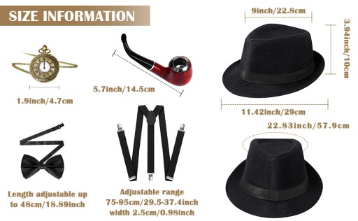 Urocza muszka i krawaty wykonane są z miękkiej satyny, wygodne i transmitery w użytkowaniu. Klasyczne szelki w stylu Y, bardzo elastyczna i regulowana, oddychająca i lekka czapka panama. Dodaj idealnego akcentu wyglądu kostiumów z lat 20. Ten pakiet wystarczy zastosować do koszuli i spodni!