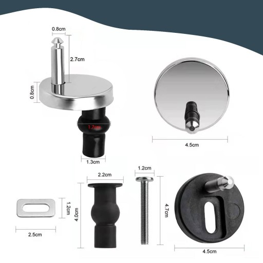 【Płytki zawiasów】 Okrągła płytka zawiasu może sprawić, że śruby do otworów w toalecie będą sztywniejsze i mocniejsze. Podczas dokręcania śrub, które podkładki wciskają się w otwory, należy uważać, aby nie dokręcić śruby tak mocno, aby nie przebiła się przez podkładkę.