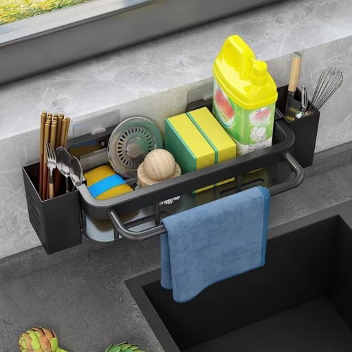 ОРГАНАЙЗЕР ДЕРЖАТЕЛЬ ДЛЯ ГУБКИ ПОЛКА ВЫДВИЖНОЙ КОНТЕЙНЕР ДЛЯ МОЙКИ С КРЮЧКАМИ
