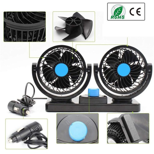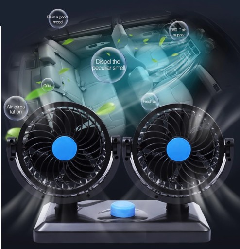 Podwójny wiatrak, wentylator samochodowy zasilany za 12v pod zapalniczkę.