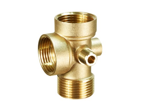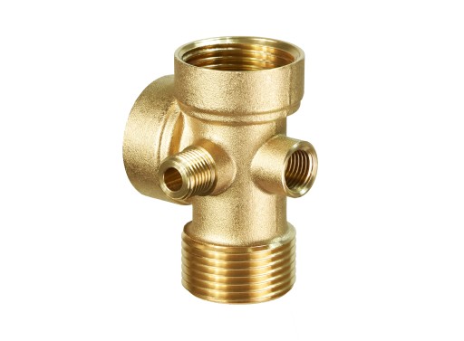 Wyjście Tłoczne Pięciodrożne z Mosiądzu: Element łączący osprzęt hydroforowy z pompą i zbiornikiem, wykonany z mosiądzu, zapewniający wysoką jakość oraz efektywną pracę systemu.