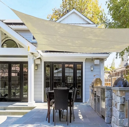 - CHRONI PRZED SŁOŃCEM – dzięki temu, że żagiel wykonany został z wysokiej jakości włókien o dużej gramaturze , nie przepuszcza promieni słonecznych. Skutecznie obniża temperaturę panującą pod żaglem oraz umożliwia cyrkulację powietrza, co jest niezwykle przydatne podczas letnich upalnych dni.