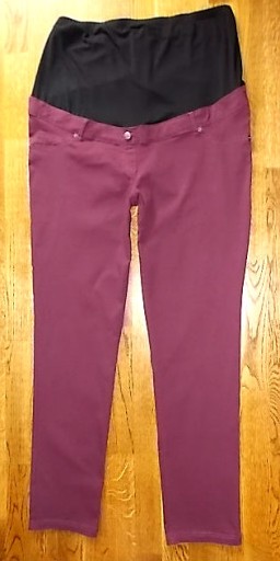 Świetne spodnie ciążowe, z bardzo dobrego gatunkowo,troszkę elastycznego materiału, w kolorze bordowym. W pasie czarna, bawełniana szeroka na 27 cm- z przodu,z tyłu niższa, rozciągliwa wstawka "golf" na rosnący brzuszek, niżej pas podtrzymujący. Z przodu imitacja kieszeni wpuszczonych, z tyłu kieszenie naszyte. Nogawki spodni proste,wąskie. Spodnie są nowe z papierową metką- suuuper. Spodnie są bardzo wygodne,nigdzie nie gniotą świetnie się układają i wyglądają.!!! SERDECZNIE POLECAM!!!