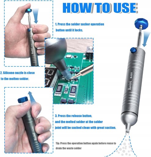 МОЩНЫЙ АЛЮМИНИЕВЫЙ РУЧНОЙ ПАЯЛЬНЫЙ ЭКСТРАКТОР TINN - KAISI K-331 HQ