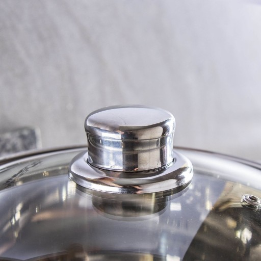 Każdy garnek wyposażony został w dopasowaną szklaną pokrywkę.