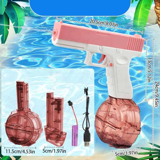 PISTOLET NA WODĘ ELEKTRYCZNY WODNY MIOTACZ AUTOMATYCZNY RÓŻOWY