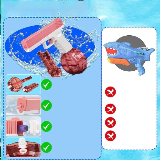 Potężny pistolet natryskowy jest idealny na zajęcia na świeżym powietrzu, plaże, piaszczyste plaże, baseny, imprezy, zapewniając niekończącą się zabawę. W tym gorącym sezonie przeżyj ekscytującą bitwę na pistolety wodne z przyjaciółmi lub dziećmi — letni prezent dla dzieci. (Nie zanurzaj elektrycznego pistoletu na wodę w wodzie, aby uniknąć uszkodzenia elementów elektronicznych!)