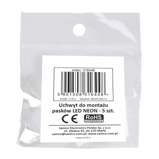 Zestaw uchwyt do mocowania taśmy LED NEON uchwyty 5 sztuk Polux