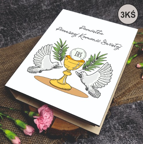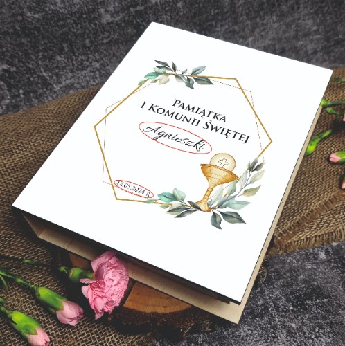 - w przypadku wieczka 1KŚ jakie imię (w formie odmienionej) oraz datę mamy umieścić pod napisem "Pamiątka I Komunii Świętej", który nie podlega modyfikacjom - w przypadku braku informacji realizujemy motyw bez imienia dziecka i daty uroczystości