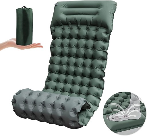 - Podkładka do spania ma zatrzask od strony kempingu i można ją dowolnie połączyć z tą samą nadmuchiwaną poduszką, aby poprawić praktyczność na świeżym powietrzu.