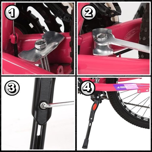 Produkt montuje się na tylną rurę ramy przy użyciu imbusów (brak w zestawie), podpórka będzie pasowała również do rowerów mających system hamulców tarczowych.