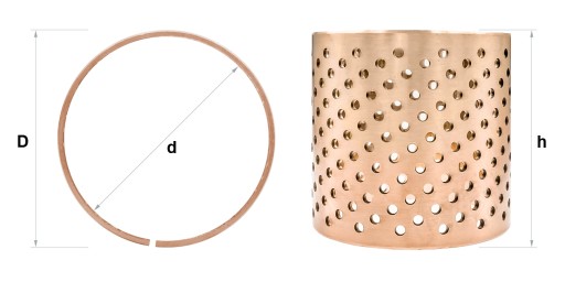 Wysokiej jakości tuleja wykonana z brązu, przeznaczona do pracy w trudnych warunkach. Nadaje się do pracy w ruchu obrotowym i wahadłowym. Posiada wysoką odporność na ścieranie i korozję. Otwory smarne rozmieszczone na całej powierzchni nośnej pozwalają szybko wytworzyć film smarny i w ten sposób zmniejszyć tarcie początkowe. Typ łożyska szczególnie odpowiedni do konstrukcji, w których występują duże obciążenia i stosunkowo powolne ruchy. Specjalne nacięcie wzdłuż tulei ułatwia montaż.