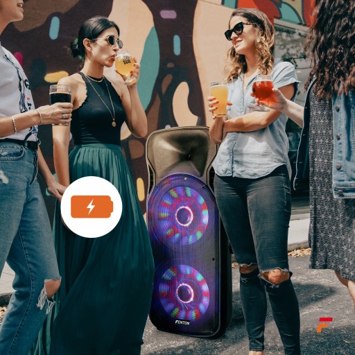 Большая мобильная светодиодная колонна, 2 микрофона для вечеринок по 15 дюймов, 1600 Вт, аккумулятор Fenton
