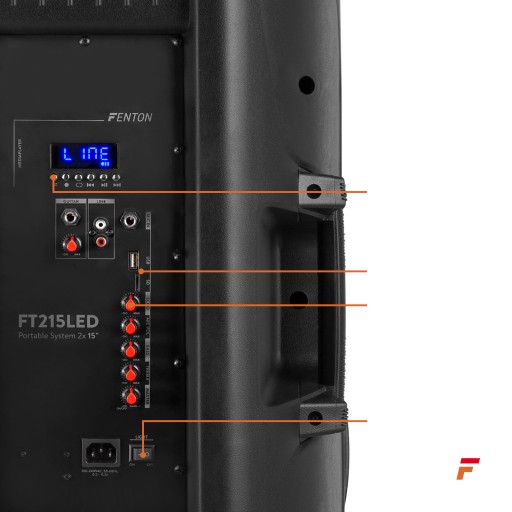 Zanim dźwięk wyjdzie z głośnika, należy oczywiście najpierw wprowadzić sygnał. FT215LED ma kilka opcji, dzięki którym nigdy nie będziesz musiał rezygnować z ulubionej (imprezowej) muzyki. Przede wszystkim głośnik posiada Bluetooth, dzięki któremu można nawiązać bezprzewodowe połączenie np. z telefonem czy tabletem. Po nawiązaniu połączenia głośnik wyświetli zawartość odtwarzaną na sparowanym urządzeniu. YouTube, Spotify, Deezer, muzyka Apple i tak dalej – wszystko to jest przesyłane bezprzewodowo do głośnika. Inną opcją jest wewnętrzny odtwarzacz MP3, który można obsługiwać za pomocą dołączonego pilota. Włóż pamięć USB lub kartę SD z muzyką w formacie MP3 do odtwarzacza multimedialnego, a system zacznie odtwarzać muzykę bezpośrednio z pendrive'a lub karty. Wreszcie, do wejścia liniowego/AUX można podłączyć mikser, kontroler DJ, odtwarzacz CD itp., uzupełniając łączność FT215LED.