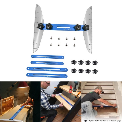 Domowe narzędzia do cięcia schodów Zestaw szablonów stopni schodów, regulowany zakres wynosi 11–60 cali.