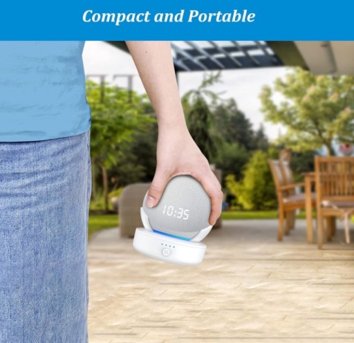 - Mini rozmiar: nasz akumulator ma prawie taki sam rozmiar w porównaniu z Dot i można go łatwo przenosić z pomieszczenia do pokoju, nawet z wewnątrz na zewnątrz.