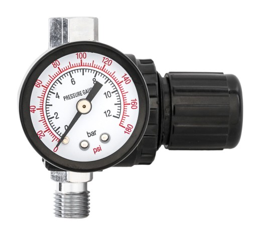 - Regulator ciśnienia - kontrola nad ciśnieniem umożliwi lepszą obsługę pistoletu, co znacznie ułatwi precyzyjne malowanie