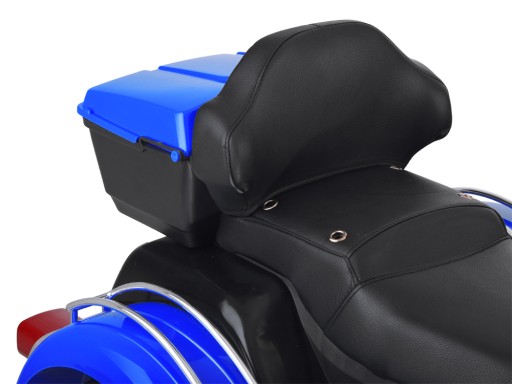 Duży motor posiada wygodny fotel z oparciem, kufer zapinany na niezbędne akcesoria potrzebne w podróży, oświetlenie świecące z przodu i z tyłu. Panel muzyczny z wesołą muzyką umili podróż. Motocykl posiada napęd na dwa silniki 2 x 12V + 1 x akumulator żelowy 12V 4,5 Ah.