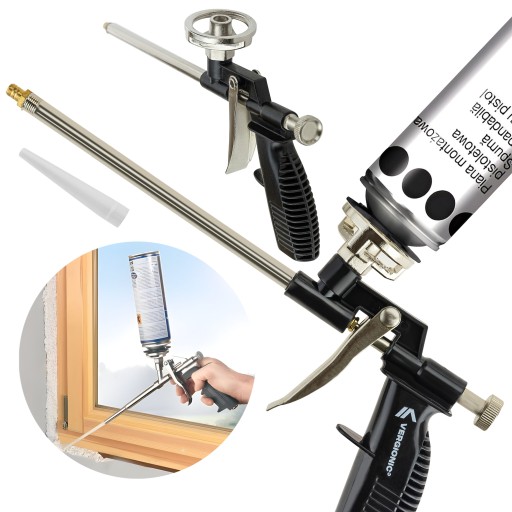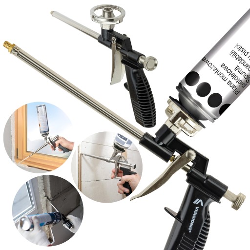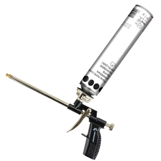 Pistolet do pianki montażowej ułatwia jej aplikację, oraz usprawnia pracę. Korpus pistoletu wykonany jest z metalu, lekki i nie daje dodatkowego obciążenia. Rękojeść z tworzywa sztucznego została specjalnie wyprofilowana aby pistolet nie wyślizgiwał się z ręki. Dodatkowo pistolet wyposażony został w pokrętło do regulacji strumienia piany. Zapewnia to kontrolę nad ilością piany podczas pracy. W zestawie dołączono plastikową dyszę umożliwiającą precyzyjną aplikację pianki.