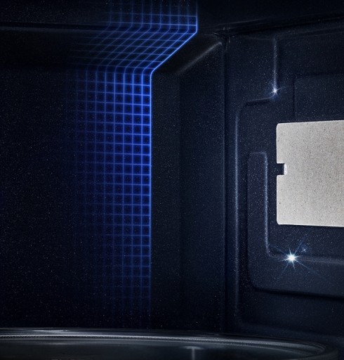 Masz dość nierównomiernie podgrzewanego jedzenia? Potrójny system dystrybucji firmy Samsung równomiernie rozprowadza ciepło w kuchence mikrofalowej, dzięki czemu żywność jest wszędzie jednakowo gorąca.