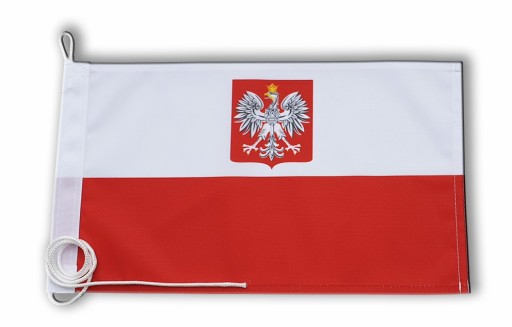 Przedmiotem sprzedaży jest bandera POLSKA z Godłem wykonana z bardzo wysokiej jakości tkaniny 100% poliestrowej o wymiarach 30 x 50cm wykonana czyli uszyta i wydrukowana z jednego kawałka materiału o gramaturze 200g/m2 , estetycznie i mocno obszyta nićmi poliestrowymi.
