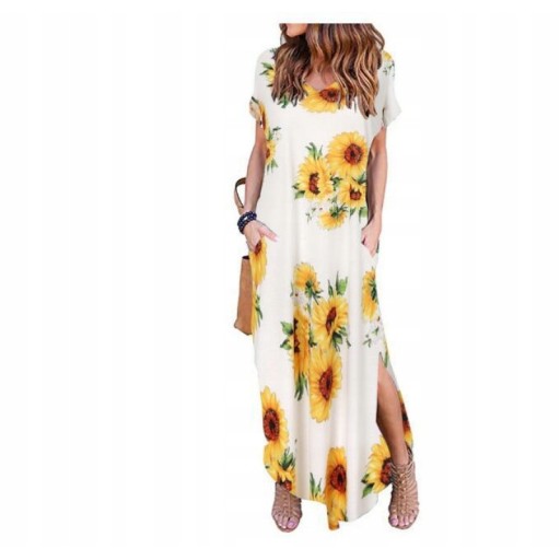 Sukienka damska maxi w kwiaty z rozcięciem to doskonały wybór dla kobiet, które cenią sobie elegancki styl oraz wygodę.