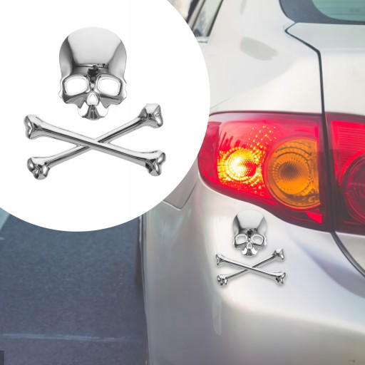 4 * nowy 3D metalowy szkielet skrzyżowane piszczele motocykl samochodowy etykieta samoprzylepna znaczek z symbolem Car Styling naklejki kalkomania (srebrny)