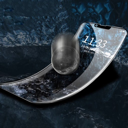 Elastyczne szkło hybrydowe dopasowane do całego ekranu telefonu, posiada czarną ramkę na brzegach .