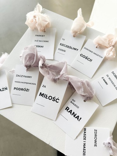 Jeśli interesują Cię spójne dodatki ślubne, chcesz je zamówić w jednym miejscu i mieć pewność, że wykonane są z największą starannością, zapraszamy Cię na nasze pozostałe aukcje. Tworzymy wyjątkowe dodatku takie jak tablice powitalne, zestawy skrzynek, pudełek na obrączki, plany stołów i winietki - wszystko dopasowane do wymarzonego przez Ciebie stylu wesela.