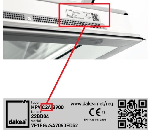 Na zdjęciu umieszonym z prawej strony, zaznaczyliśmy dokładne miejsce, gdzie znajduję się Kod odpowiadający wymiarowi rolety dachowej