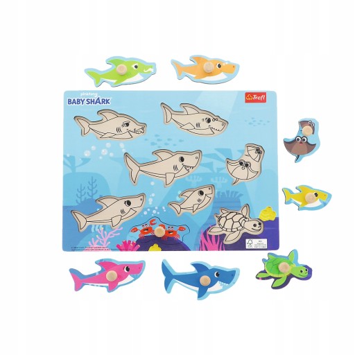 - Puzzle drewniane z kolorową grafiką na licencji Baby shark