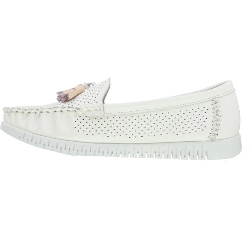 Białe mokasyny damskie skórzane oddychające szyte komfortowe Jezzi