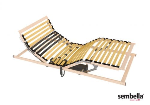 28-listwowy stelaż regulowany elektrycznie za pomocą sterowania przewodowego, zapewniający płynną regulację pozycji ciała od leżącej do siedzącej, w tym również relaksującej – z uniesionymi i ugiętymi nogami.