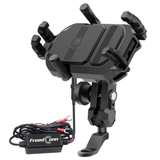 Zaawansowany uchwyt motocyklowy FreedConn MC29 najwyższy model z oferty, przeznaczony do współpracy z najnowszymi modelami telefonów z ładowaniem indukcyjnym, wyposażony w niezawodny system sześciopunktowego mocowania.