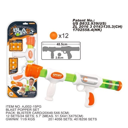 Mega Pistolet 12 Kulek Ulubiona zabawka każdego chłopca, pistolet na kulki, to propozycja dla dzieci już od 4 – go roku życia. Zestaw zawiera pistolet i 12 miękkich kulek. Obsługa, pistoletu jest bardzo prosta, należy załadować kulki, rozciągnąć i ścisnąć wyrzutnię, wytworzy się wówczas ciśnienie, które spowoduje wystrzał kuli. Wystrzelone kulki lecą na odległość aż do 8 metrów. Zabawka nie wymaga użycia baterii, jest zasilana ludzką siłą. Na końcu lufy znajduje się gumowa uszczelka, która zapobiega samoistnemu wypadaniu kulek. Zawartość zestawu- pistolet, - 12 miękkich kulek. Wymiary - kulki o średnicy ok. 3 cm. - pistolet ok. 35 cm x 16 cm x 5 cm, - opakowanie ok. 49,5 cm x 20 cm x 6,5 cm.