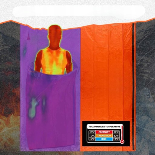 Wystarczająco duża, aby zakryć ją od głowy do stóp. Świecące kolory w jaskrawym kolorze pomarańczowym śpiwór można natychmiast zobaczyć z odległości, co czyni go nieodzownym miejscem odpoczynku w przypadku oczekiwania sprzętu ratunkowego.