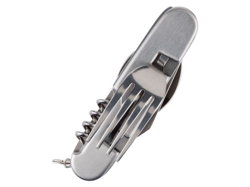 - widelec, korkociąg, otwieracz do puszek, otwieracz do butelek, mała łyżeczka, duży widelec, nóż, przebijak