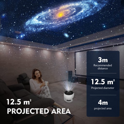 Urządzenie zostało wyposażone w aż 12 wymiennych wkładów, a każdy z nich wyświetli projekcję kosmosu. która w mgnieniu oka zmieni Twój pokój!