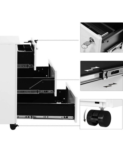 Szafka kontenerek pod biurko z szufladami mobilna metalowa biała